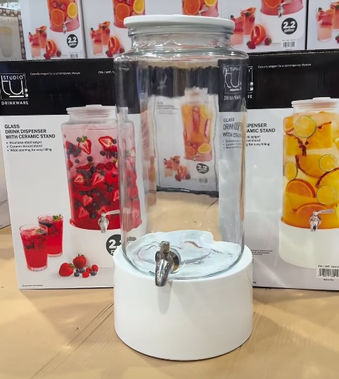 Glass Drink Dispenser with Ceramic Base – $22