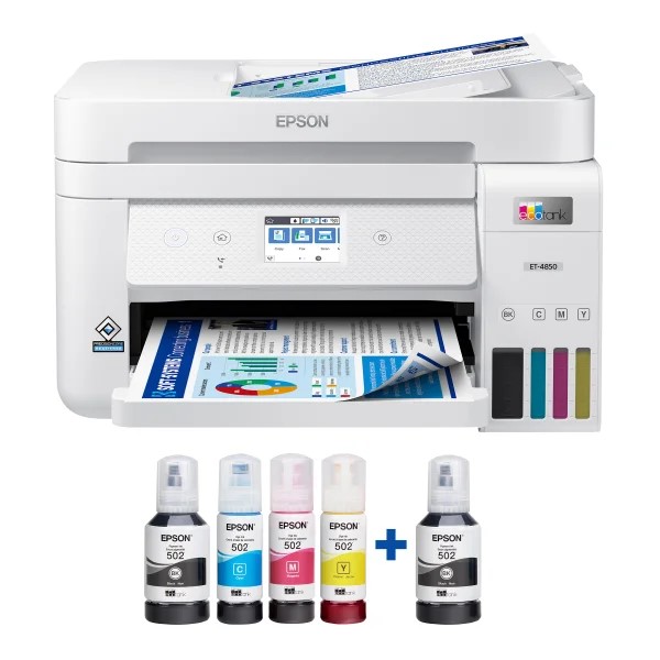 High-efficiency cartridge-free printer that includes a significant amount of ink in the box.
