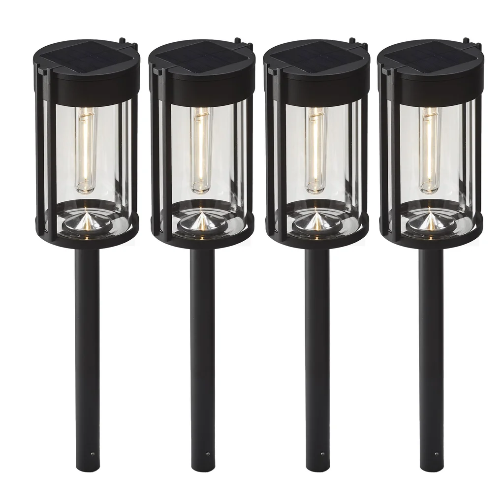A four-pack of solar-powered lights for yard or walkway illumination.
