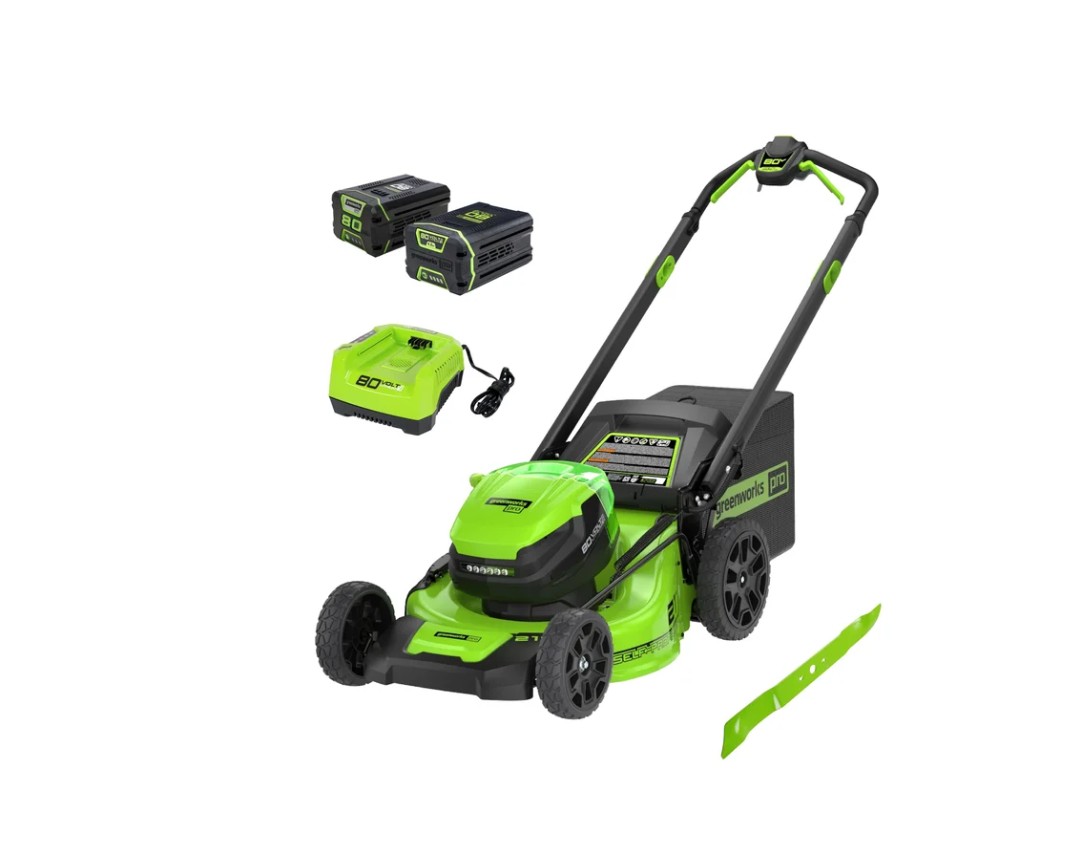 High-performance electric mower; can be purchased as a standalone unit or as part of a larger landscaping bundle.