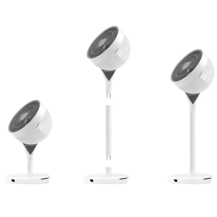 A tall, adjustable circulating fan that can be converted into a tabletop unit.