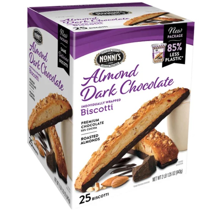 - 12 Nonni’s Bakery Almond Dark Chocolate Biscotti