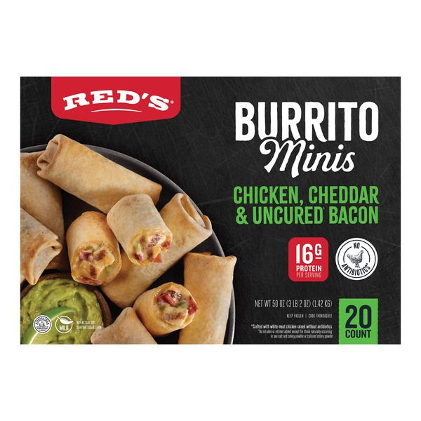 Limited-time frozen burrito minis filled with seasoned pulled beef, offering 14g of protein per serving in a convenient 20-count box.