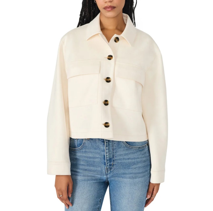 Trendy cropped jacket with a soft faux-suede finish, perfect for layering during transitional weather.