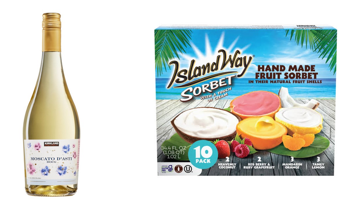 Kirkland Moscato d’Asti ($7.99) & Island Way Fruit Sorbets ($14.99)