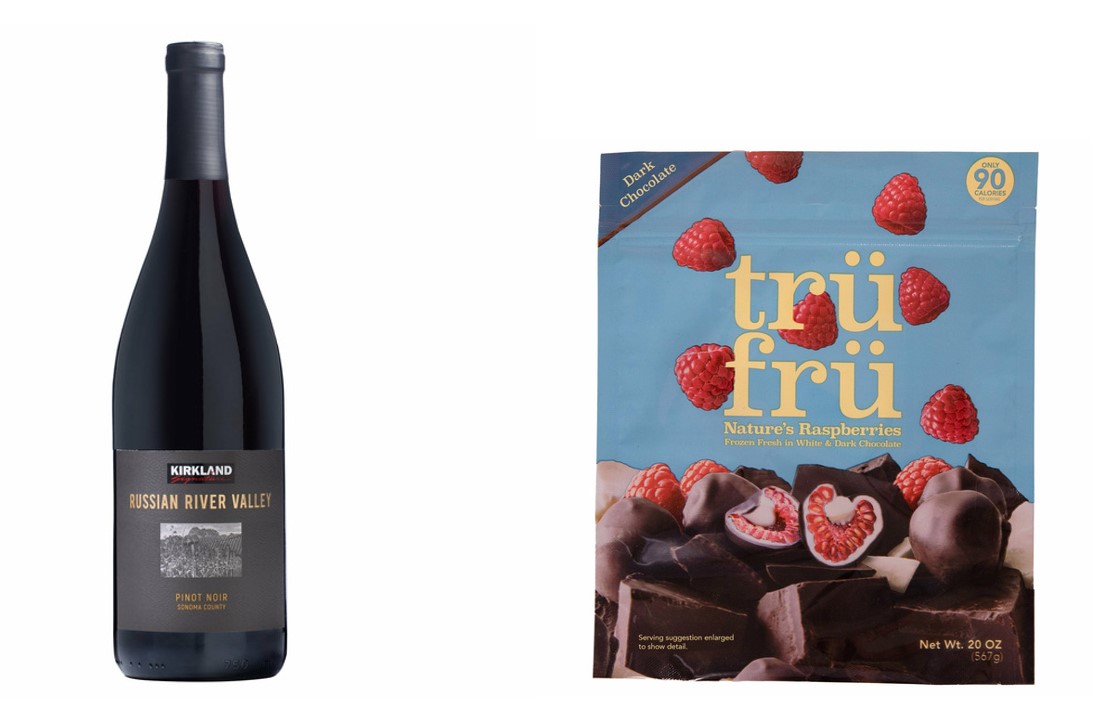 Kirkland Russian River Pinot Noir ($11.99) & Trü Frü Dark Chocolate Raspberries ($10.49)