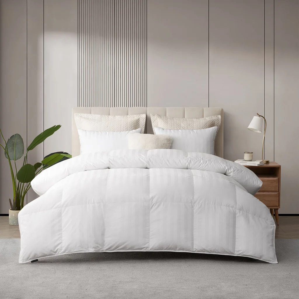 - Plush 650-fill power down in 500-thread-count cotton shell traps warmth for luxurious, breathable sleep year-round.
