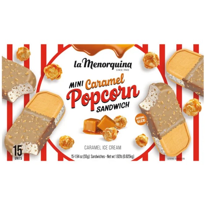 - Costco members love the La Menorquina Mini Caramel Popcorn Ice Cream Sandwiches. “They’re honestly not bad! I got a box a month ago, and apparently loved them so much I ate two, at separate times, while I was sleeping a week or two ago. The popcorn bits are just in the caramel coating exterior, and I didn’t snag a tooth or anything, and then the ice cream is just caramel flavored ice cream,” one shopper said.