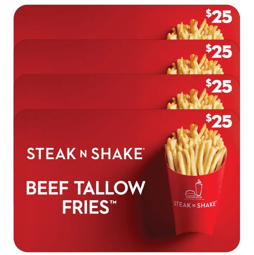 - Costco shoppers can now grab Steak ‘N Shake Four Restaurant $25 eGift Cards ($100 Value) for $79.99. “Fresh, grilled-to-order Steakburgers. Crispy, crave-worthy Beef Tallow Fries™. Homemade ice cream milkshakes. Since 1934, Steak ‘n Shake® has served up iconic American diner fare with unbeatable value,” the chain says.