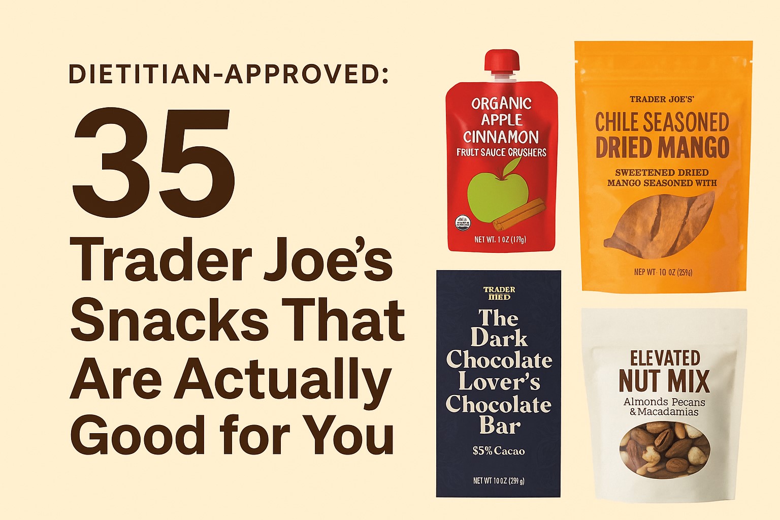 Trader Joe’s makes it refreshingly easy to snack smart—no complicated labels or mystery ingredients required. Whether you’re stocking your pantry, planning school lunches, or just want better options for movie night, these 35 dietitian-approved snacks prove that healthy and delicious can go hand in hand. Keep a few on hand and you’ll always be just a grab away from a feel-good bite.