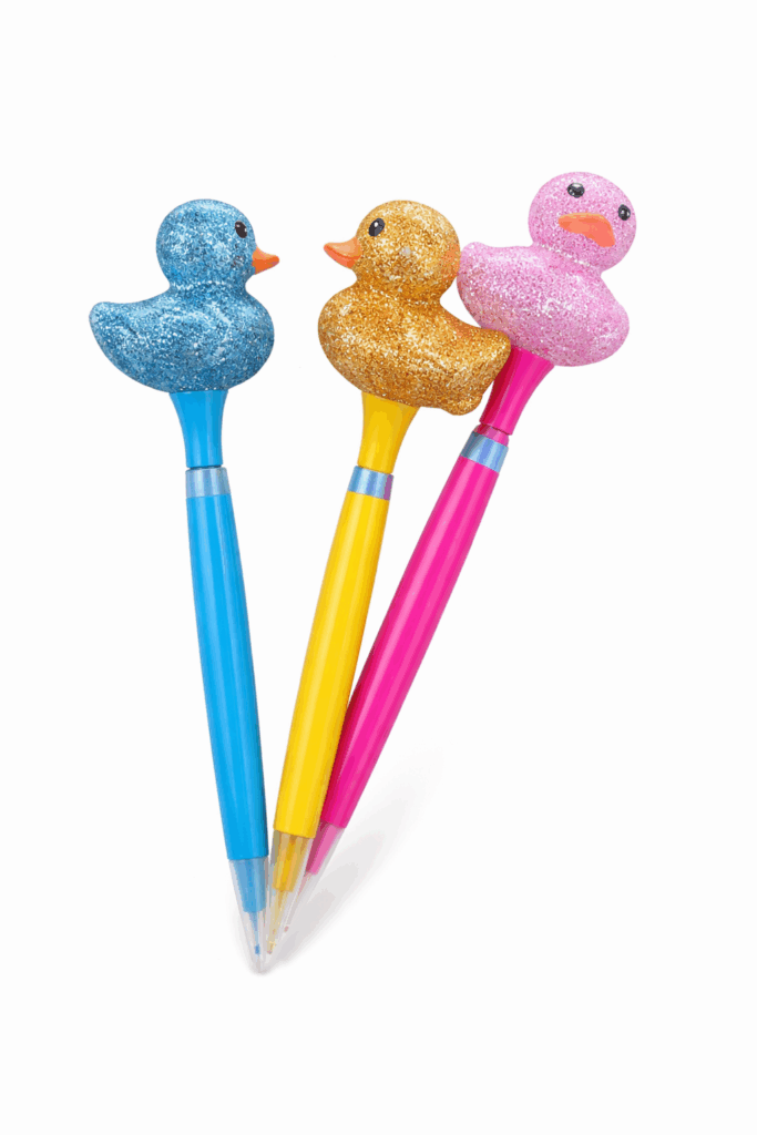 - Description: Adorable novelty pens topped with colorful rubber ducks, available in pink and blue designs.