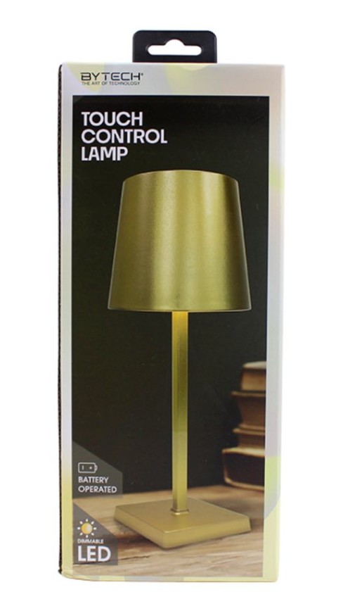 Sleek, battery-operated metallic lamps with touch-sensitive dimming and warm LED light.