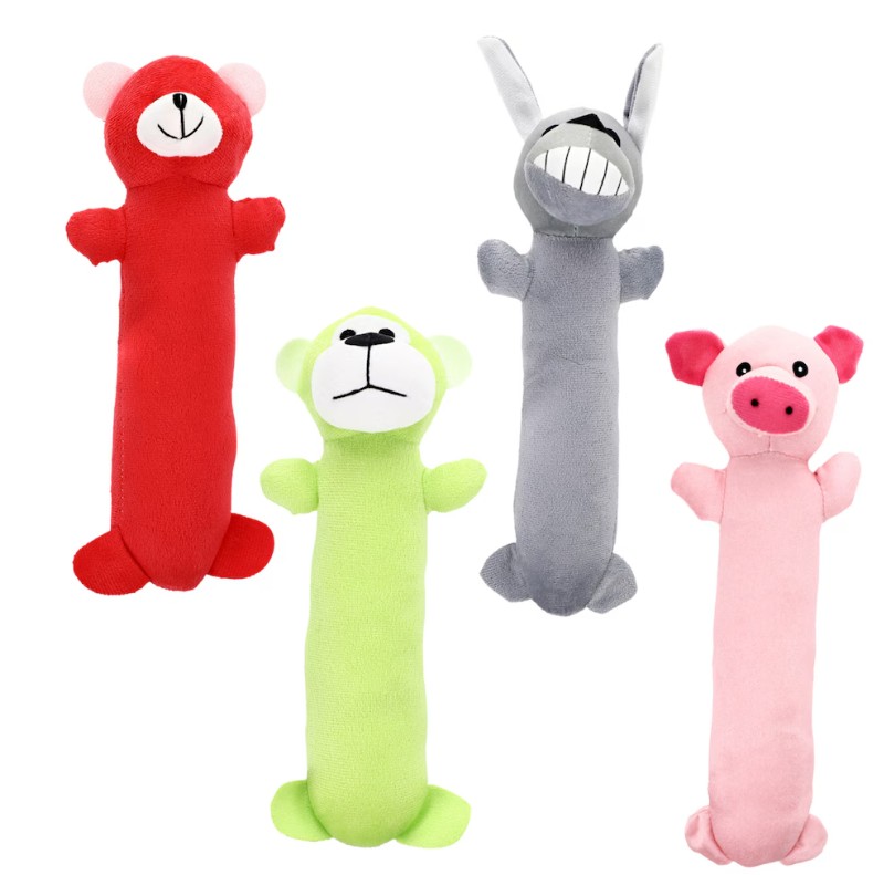 Squeaky vinyl toys shaped like KFC chicken buckets, drumsticks, and soda cups.