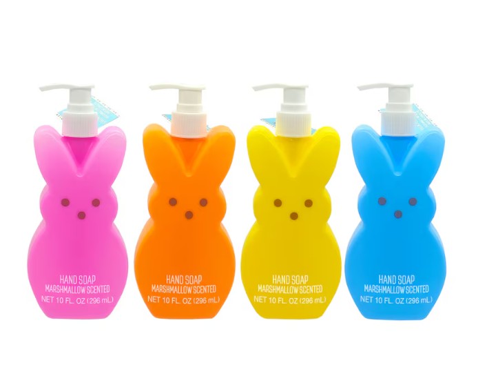 A themed hand soap dispenser shaped like the iconic Peeps bunny with a marshmallow-infused scent.