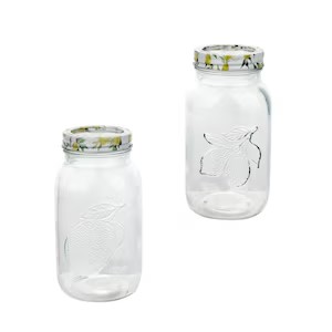 Uniform glass jars used for decanting bulk pantry items like baking supplies, pasta, or grains to create a cohesive aesthetic.