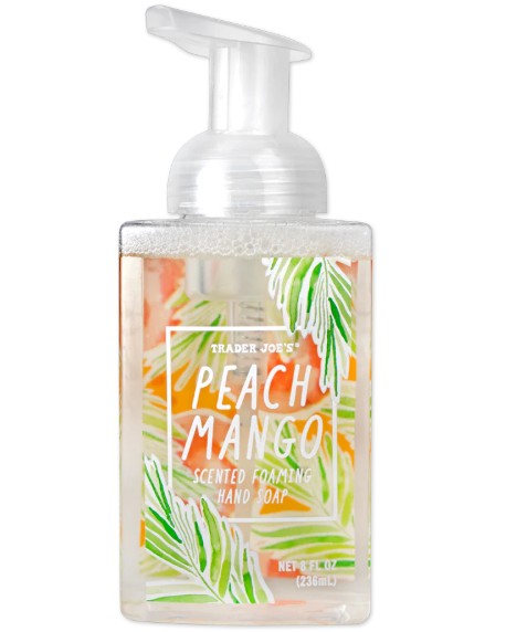 Trader Joe’s Peach Mango Foaming Hand Soap combines gentle cleansing with a burst of tropical fragrance. Made with coconut- and olive-derived surfactants, aloe, peach juice, and vitamin E, it hydrates while it cleans. Free from parabens, sulfates, synthetic dyes, and never tested on animals—this fruity, summer-scented soap offers luxury without the high price.