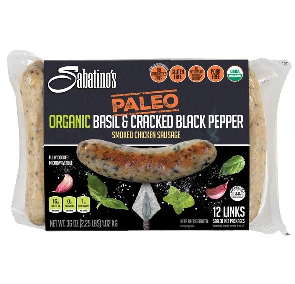 Sabatino’s Paleo Organic Basil and Cracked Black Pepper Chicken Sausage $18.65/36 oz