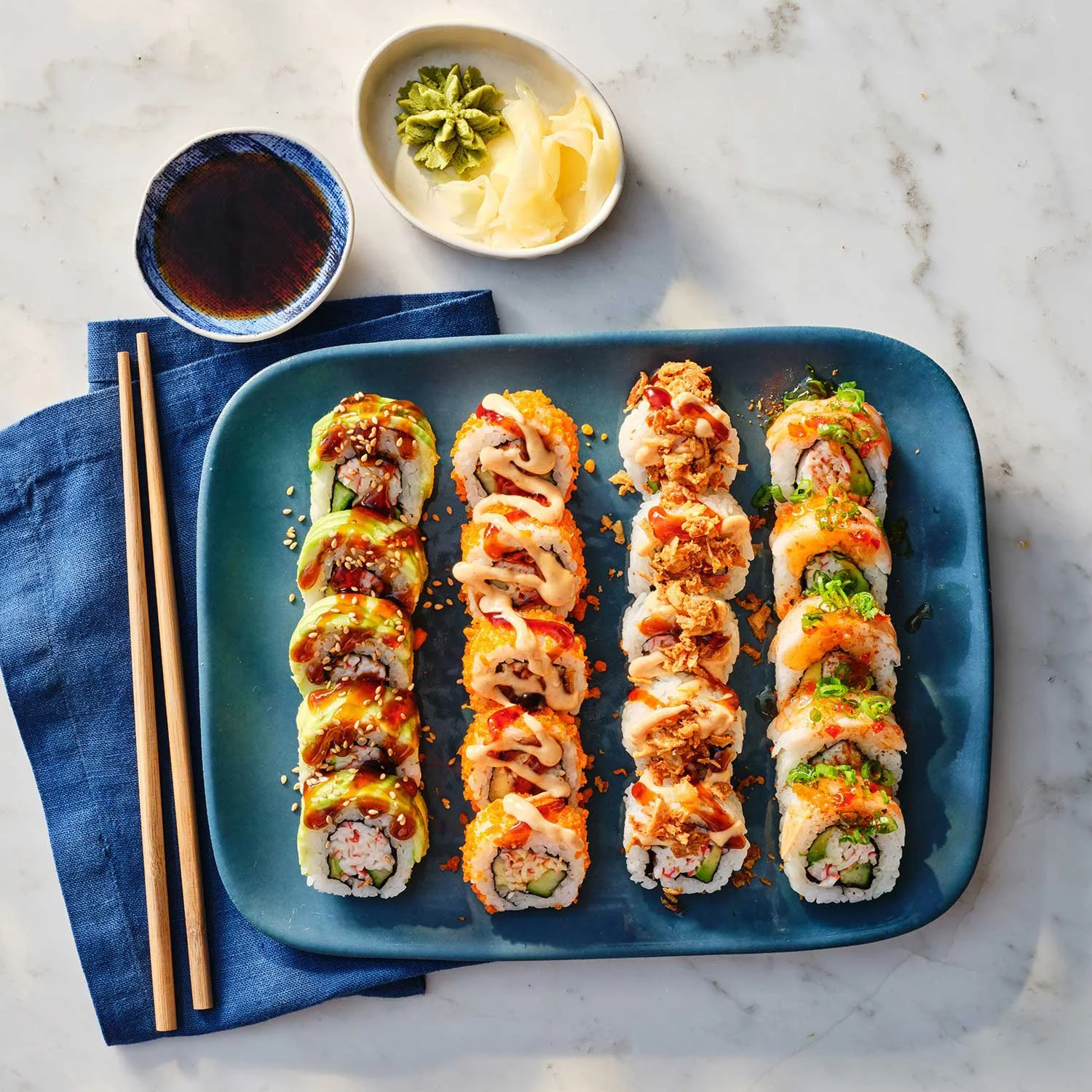 Fresh crab rolls (Tiger, California Crunch, Dragon)—they have raw options too. Made by an in-store chef.
