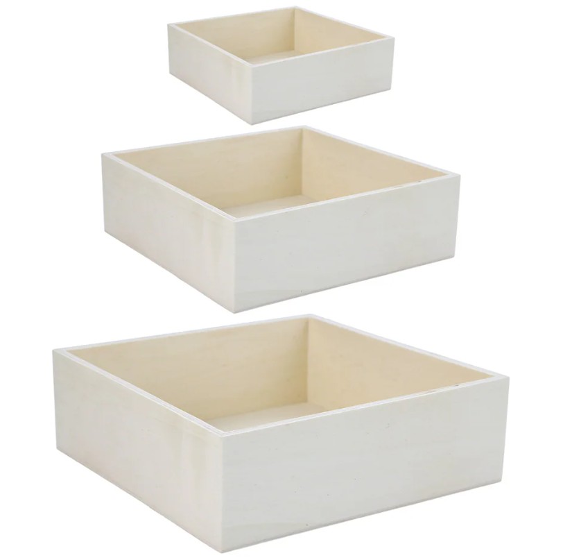 Versatile wood crates ideal for stacking, painting, and seasonal displays.