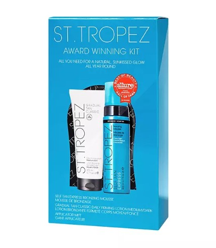 A complete tanning system including mousse, mitt, and prep lotion for streak-free glow.