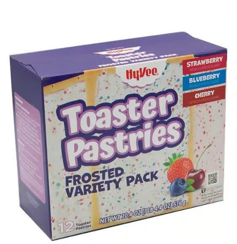 Classic frosted toaster pastries in a mix of fruity flavors—strawberry, blueberry, and cherry. Toaster-ready for mornings on the go, with sweet icing and filling that kids (and adults) love. A nostalgic, budget-friendly treat for breakfast or snacks.