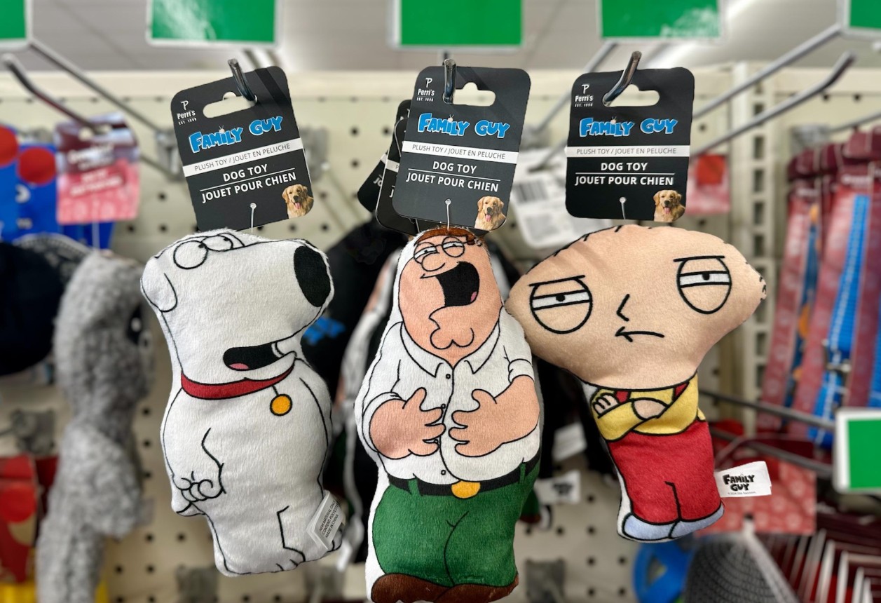 Authentic character items featuring Peter, Brian, and Stewie. While some “Plus” items are higher priced, these frequently appear in the $1.25 toy section as overstock.
