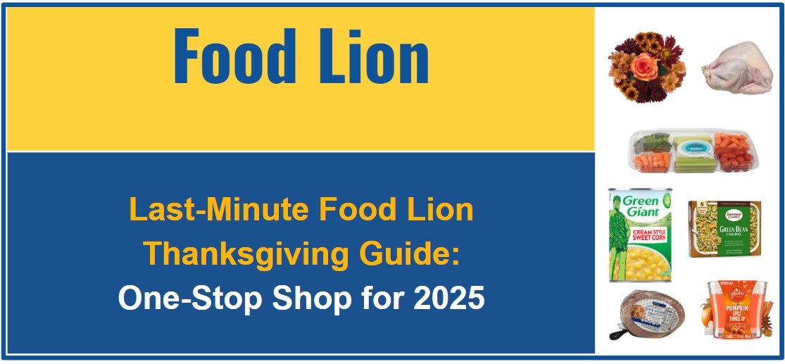 Food Lion’s $40 Thanksgiving Meal Deal for 10 is available through November 27, offering 14 essentials—including a 14-lb turkey for $0.39/lb—at under $4 per person.