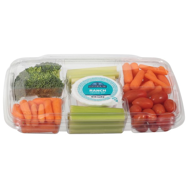 - Carrots, celery, broccoli, and cherry tomatoes ready to dip in creamy ranch ($2/tub).