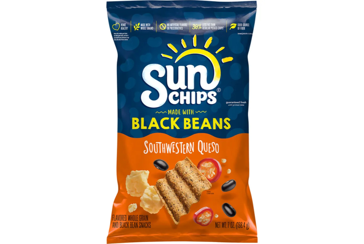 SunChips Southwestern Queso are a flavorful twist on the classic SunChip. The bold flavor of queso with a southwestern flair adds a kick of spice that complements the light, whole-grain crunch of the chips. These chips are perfect for dipping into salsa, guacamole, or enjoying on their own. The mix of tangy cheese and zesty spices gives each bite a unique and delicious flavor. SunChips are known for their crunch and texture, and these do not disappoint. They are a healthier alternative to traditional chips, offering more fiber with each serving. Enjoy these chips when you want a flavorful, satisfying snack.