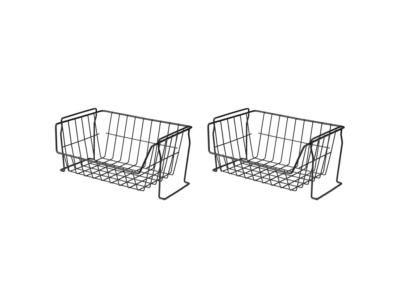 These stackable baskets work great for organizing pantries, closets, or bathroom shelves. The open-wire design lets you see contents at a glance, which saves time during busy mornings. Built-in handles make it easier to pull them out from higher shelves. Many shoppers use them for snacks, cleaning supplies, or craft items. Since they come in a two-pack, you get extra storage without taking up more space. They are simple, useful, and easy to style around your home.