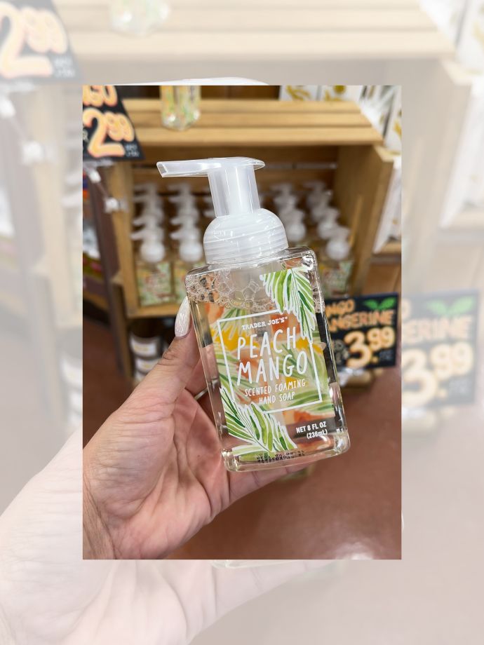 Trader Joe’s Peach Mango Foaming Hand Soap is a sumptuous blend of nature’s best, offering both cleanliness and a burst of summery fragrance for an inviting hand washing experience. Its moisturizing formula leaves hands feeling soft and refreshed.