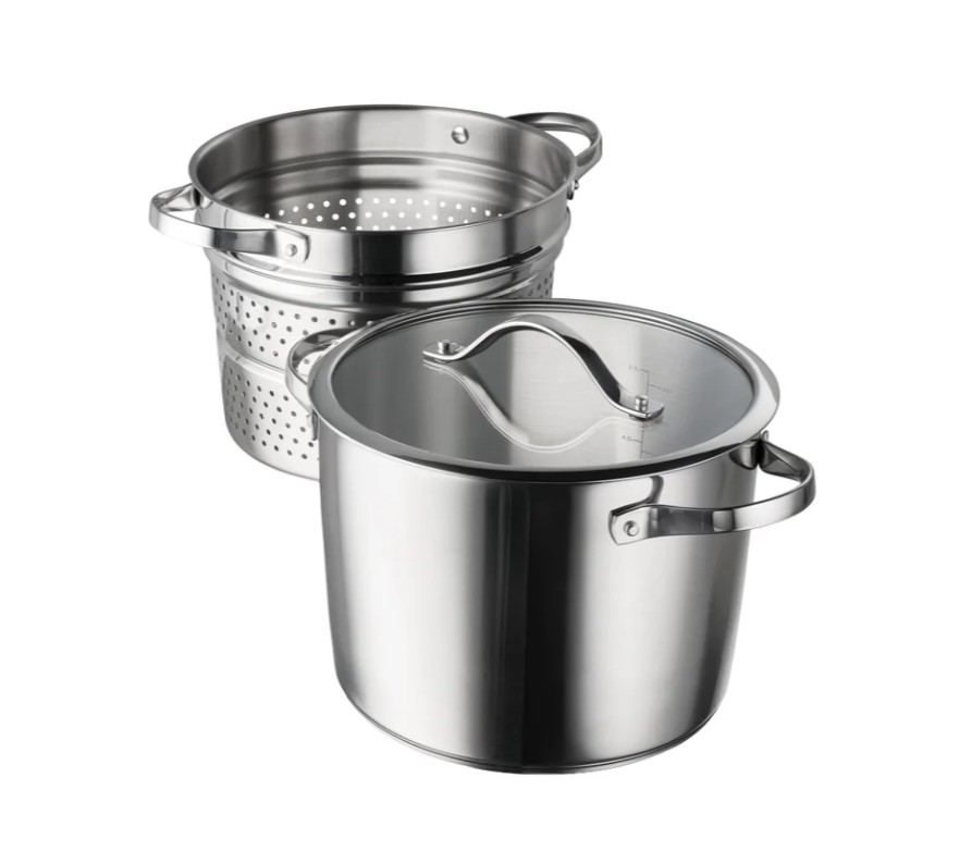 Description: 8-quart pot that includes a specialized strainer and lid.