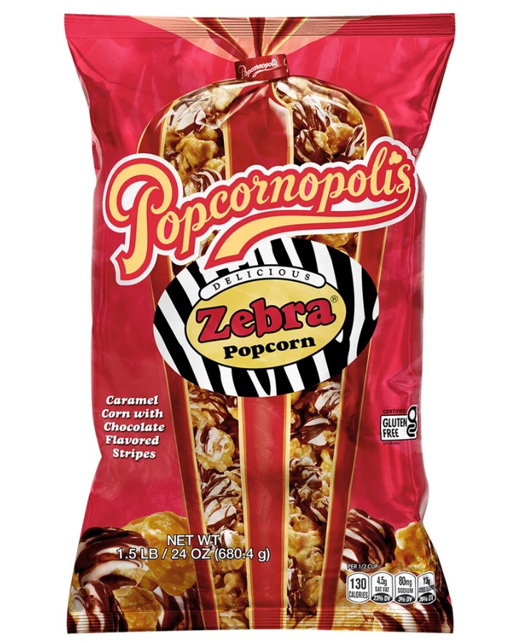 Popcornopolis Zebra Popcorn – $9.99
