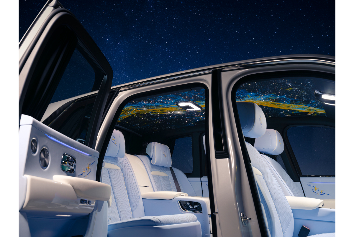 The Rolls-Royce Cullinan offers an exclusive hand-painted Milky Way headliner, a feature that takes luxury to astronomical levels. Each headliner is meticulously painted over 160 hours by skilled artisans. The result is a stunning visual representation of the Milky Way galaxy, complete with thousands of tiny fiber-optic stars that twinkle. This feature transforms the car’s interior into a celestial experience. Not only does it highlight Rolls-Royce’s commitment to craftsmanship, but it also offers a unique and highly personalized touch to every vehicle. The use of fibers and paints ensures that no two headliners are exactly alike, making each vehicle truly one of a kind. This luxurious touch is reserved for those who want an extraordinary and exclusive ambiance in their car.