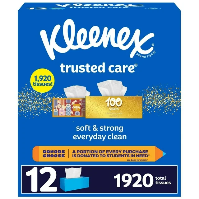 Kleenex Trusted Care 2-Ply Facial Tissues $17.94/12 x 160 tissues