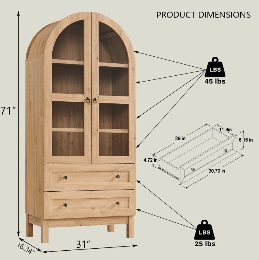 A major home dupe for 2026, this piece mimics the $1,000+ arched display cabinets seen at Arhaus and Crate & Barrel.