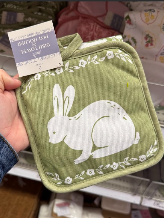 This coordinating kitchen set includes a decorative dish towel and matching pot holder in cheerful spring prints. The patterns feel fresh and cottage-inspired, making everyday kitchen tasks a little more festive. They’re practical yet decorative, allowing you to refresh your kitchen for Easter without spending much. The soft colors blend easily with neutral kitchens, and the quality feels sturdy for the price.
