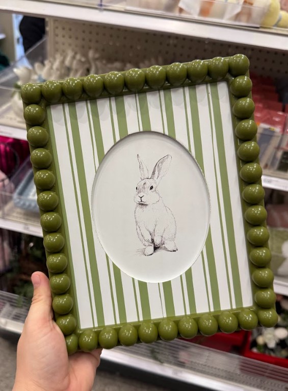 This striped green frame features raised beaded trim and a classic bunny insert. The bold green color adds freshness to your space. It’s playful yet polished and works well for Easter or spring display.