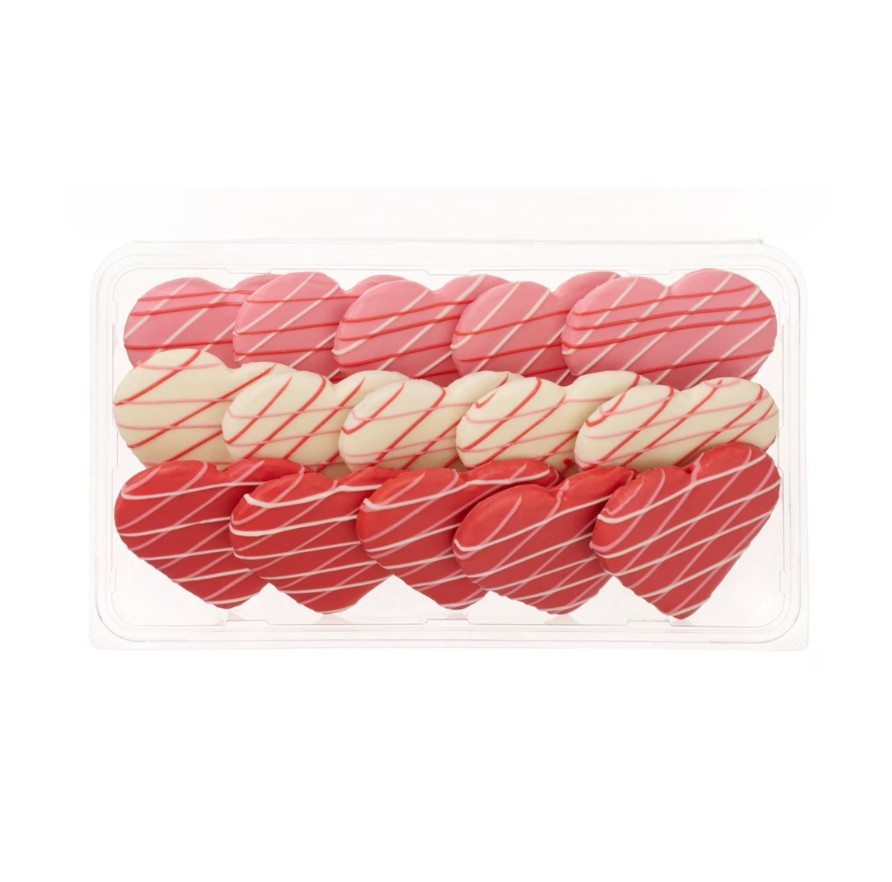 A 15-count pack of festive shortbread cookies with Valentine’s Day icing.