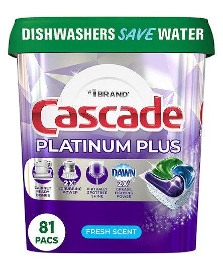 6. Cascade Platinum Plus Dishwasher Pods $17.98/81 ct