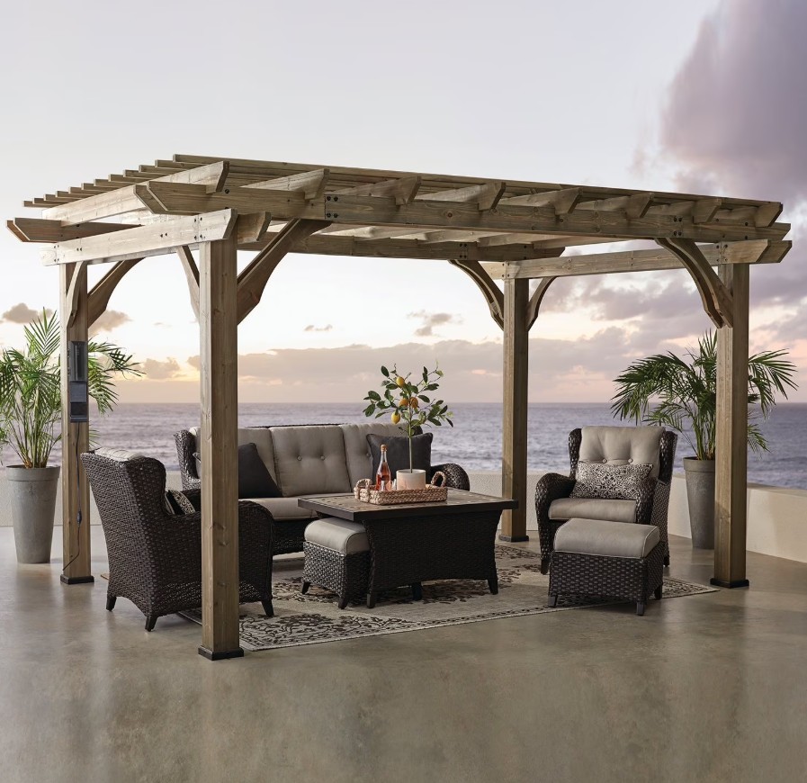 Create your own shaded retreat with this spacious cedar gazebo featuring a built-in PowerPort for easy electrical access (lights, fans, chargers—perfect for outdoor parties or dinners). Made from rot-resistant cedar with strong steel reinforcements, it’s built to handle wind and weather while adding serious curb appeal and functionality to your yard.