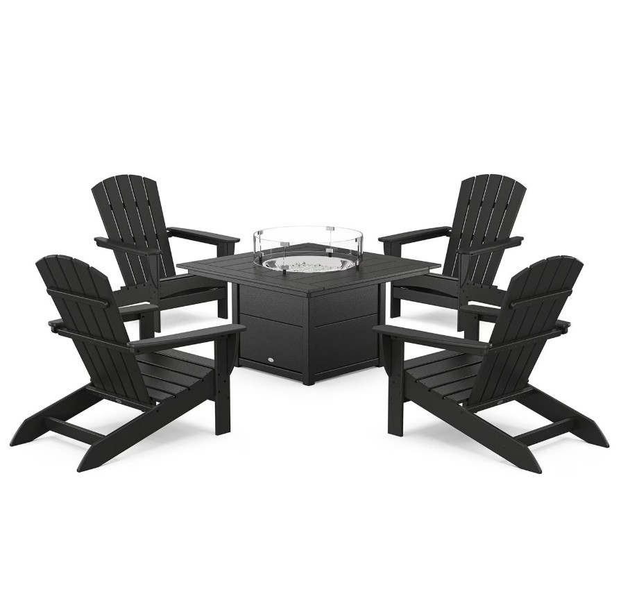 1. Polywood Gulf Shores Adirondack Conversation Set with Fire Pit Table (5-Piece) $300 off