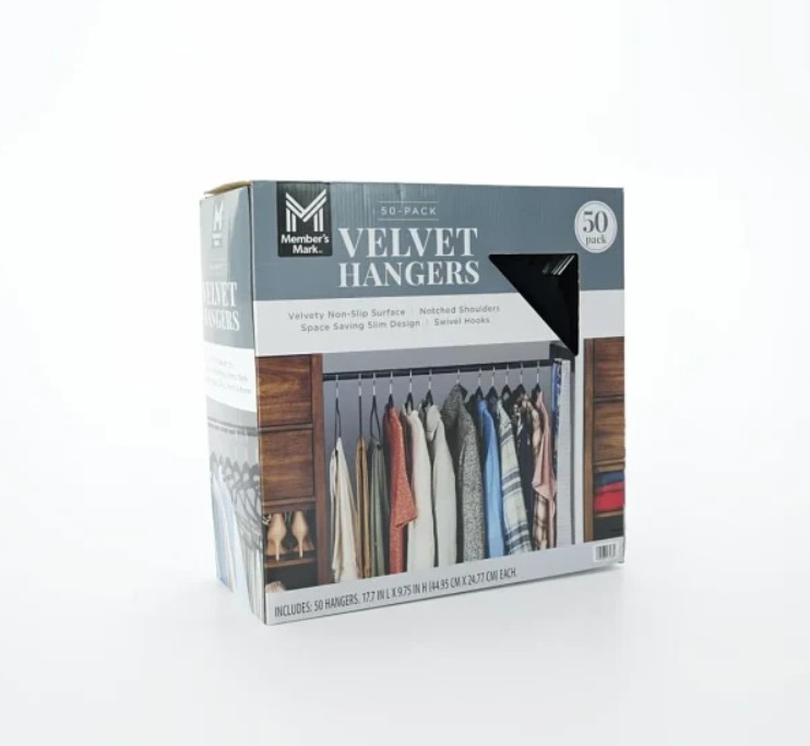 50-Pack Velvet Hangers | Before: $11.98 | Now: $10.91