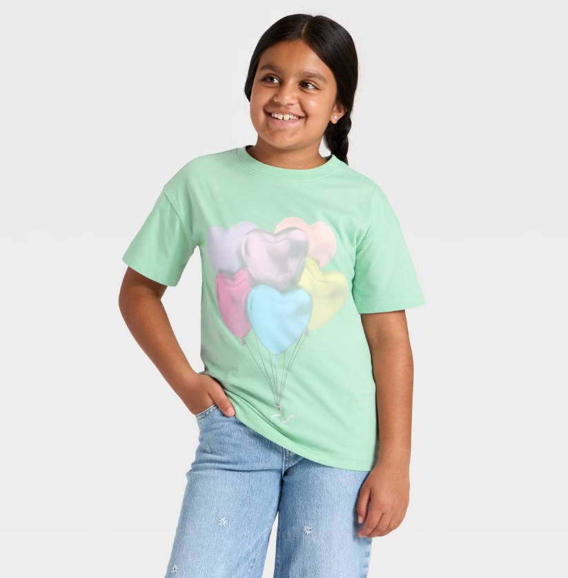 Girls’ Short-Sleeve Shirt with Heart Balloons – $5 (40% off)