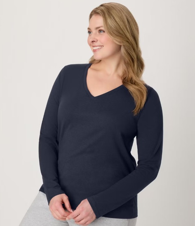 Hanes Women’s Long-Sleeve V-Neck T-Shirt – $10 (33% off)