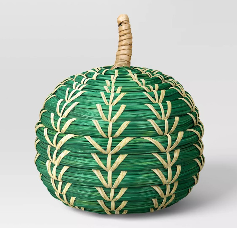 - Natural woven pumpkin decor for fall displays.