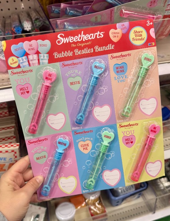 This colorful bundle of Sweethearts-themed bubble wands is perfect for kids, party favors, or classroom celebrations. Each wand features classic candy sayings for a nostalgic Valentine’s twist.