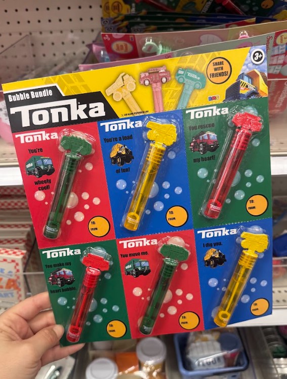 Designed with mini Tonka truck toppers, this bubble bundle is a fun Valentine’s option for kids who love vehicles. It’s playful, durable, and ideal for party bags or small gifts.