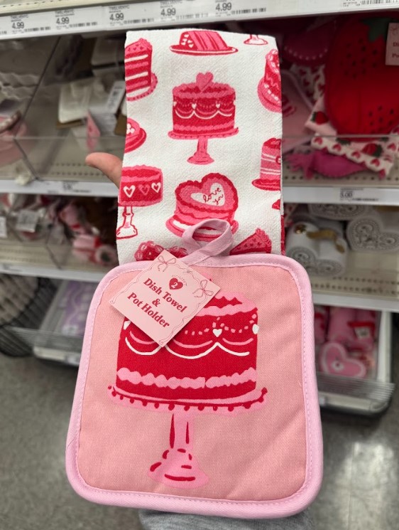 Valentine’s Cake Print Dish Towel & Pot Holder Set (2-Piece)