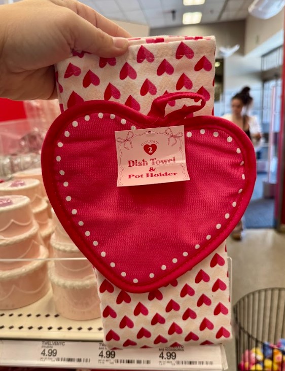 Classic heart prints make this kitchen set festive and versatile. It’s a simple way to refresh your space for the season.